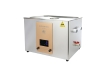 通過換能器,將功率超聲頻源的聲能轉(zhuǎn)換成機(jī)械振動,通過清洗槽壁將超聲波輻射到槽子中的清洗液。由于受到超聲波的輻射,槽內(nèi)液體中的微氣泡能夠在聲波的作用下快速變大破裂,破裂時產(chǎn)生的高強(qiáng)度剪切力作用于各類樣品上,從而達(dá)到清洗、提取、乳化、加速溶解、粉碎、分散等作用。